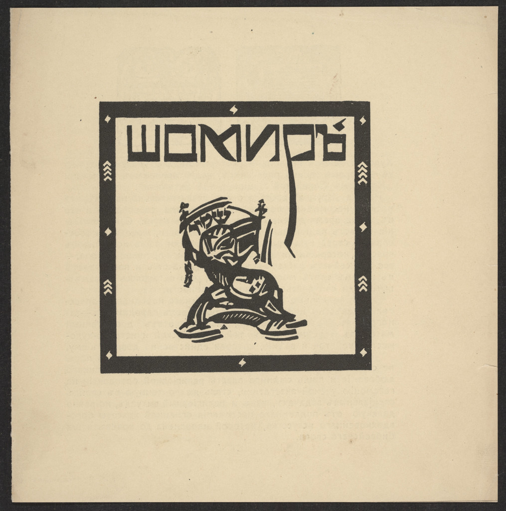 Cover with letterpress illustration by unknown artist on front, and letterpress illustration by Chagall on back; 2 letterpress illustrations (1 each by Chagall and Lissitzky)